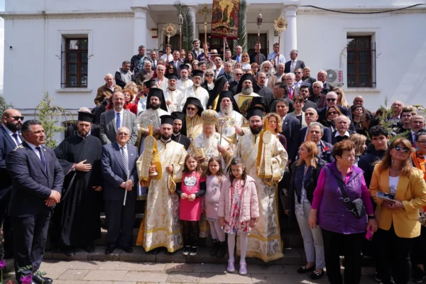 After the end of the Vespers of the Resurrection, His All-Holiness shared with all the faithful wishes for Holy Pascha, to whom he offered the customary red eggs and sweets. Then he blessed the table with traditional dishes that was placed in the garden of the Metropolis.