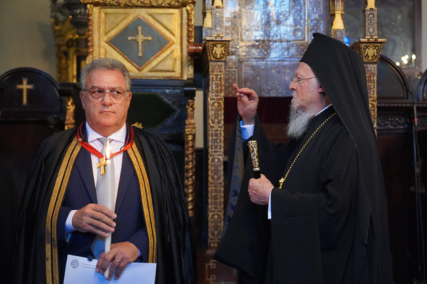 “We are particularly moved by the fact that he is honoured today as a child of the Bosphorus and the Propontis, who has not forgotten his origins, honours his roots, and preserves the sense of the values of Hellenism. A human being is not only a “citizen of the world,” but also a “citizen of heaven,” a being of divine origin and eternal destiny. We do not live “on bread alone.” When individuals close themselves off to others and focus solely on earthly bliss, their existence shrinks, their creative powers dry up, and the horizon of their lives narrows. Faith in God fundamentally supports individuals, facilitating the management of both the challenges of life and borderline situations.”