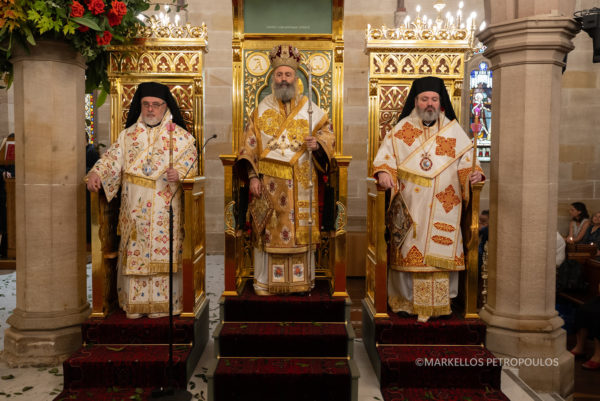In an atmosphere of resurrection joy, the Vespers of Love was celebrated on the Sunday of Pascha, 20 April 2025, at the Cathedral of the Annunciation of Our Lady in Sydney. His Eminence Archbishop Makarios of Australia, presided over the Vespers and was joined by His Eminence Metropolitan Seraphim of Sevasteia, and Their Graces Bishop Iakovos of Miletoupolis and Bishop Christodoulos of Magnesia, Chief Secretary of the Holy Eparchial Synod of the Archdiocese of Australia. A multitude of clergy from the city of Sydney participated, led by the Chancellor of the Holy Archdiocese and Dean of the Cathedral, Archimandrite of the Ecumenical Throne Christophoros Krikelis.