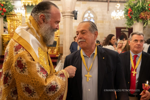 At the end of the Vespers Service, His Eminence Archbishop Makarios blessed the red eggs and distributed them to the faithful who attended the service, among whom were the Ambassador of Greece to Australia, His Excellency Mr. Stavros Venizelos, and the Consul General in Sydney, Mr. Ioannis Mallikourtis, with their spouses, and the Archons of the Great Church of Christ, Mr. Andrew Liveris, President of the Order of “Christ the Saviour”, and Mr. Theo Penklis, Vice-President of the Archdiocesan Council, also with their spouses.
