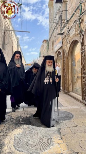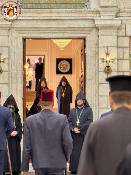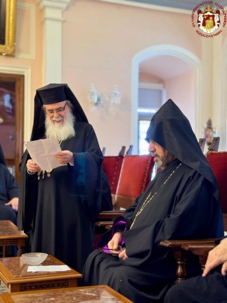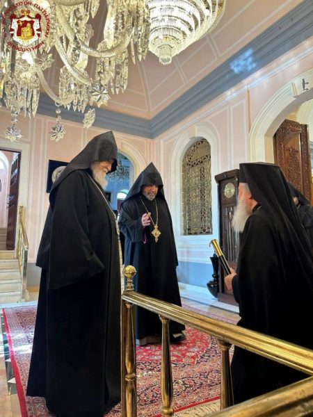During this visit, addresses were exchanged between His Beatitude, our Father and Patriarch of Jerusalem, Theophilos III, and the Armenian Patriarch, His Beatitude Nourhan Manougian.