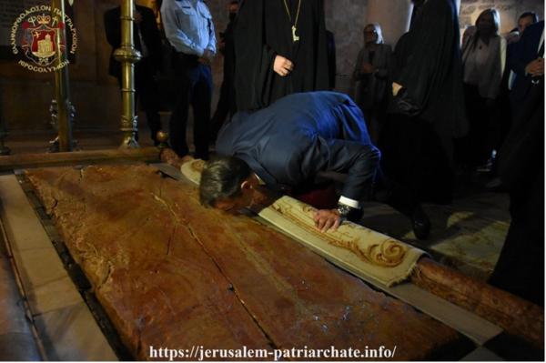 The Venerable Hagiotaphite Brotherhood and We personally rejoice especially on the presence of Your Excellency amongst us during this veneration at the Church of the Holy Sepulchre, where the Horrendous Golgotha and the All-holy Tomb of our God and Saviour Jesus Christ lie.