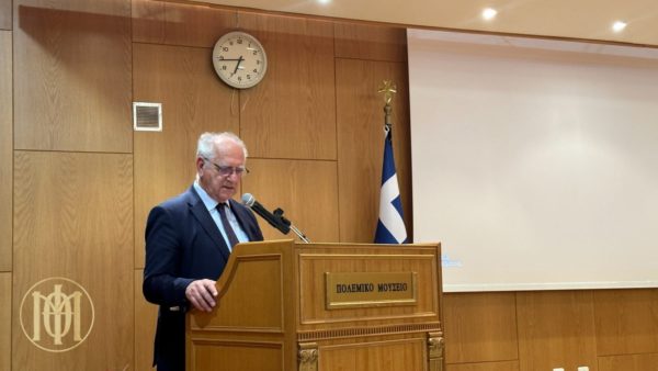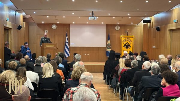 The event began with a greeting by Colonel Athanasios Papathanasiou, Director of the War Museum. Also in attendance were Metropolitan Andreas of Arkalochori, Kastelli, and Viannos, Bishop Nikiforos of Amorion, Abbot of the Patriarchal Monastery of Vlatadon, as well as representatives of Metropolitan Apostolos of Miletus and Metropolitan Ioustinos of Nea Krini and Kalamaria, along with numerous clergy, members of parliament, and local government officials.