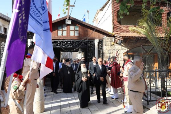The Feast of the Touching of Thomas was celebrated in Cana of Galilee, on the morning of the Sunday of Thomas, on April 29/May 12, 2024, with a festive reception by the Scouts and the Community, followed by a Divine Liturgy, which was officiated by His Beatitude, our Father and Patriarch of Jerusalem Theophilos. Co-celebrants to His Beatitude were their Eninences, the Metropolitan Kyriakos of Nazareth and Archbishop Aristarchos of Constantina, Holy Sepulchre Hieromonks with the Elder Kamarasis Archimandrite Nectarios first in rank, Priest from Cana district, Archdeacon Mark and Hierodeacon Dositheos. The service was attended by many faithful people of Cana and the honourable presence of the Ambassador of Greece to Israel Mr Kyriakos Loukakis and the Ambassador of Russia to Israel Mr Anatoly Viktorov.