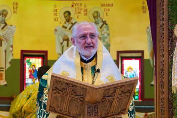 The Archbishop reminded the faithful that the Lord does not come to free humanity from one political power only to see another take its place. “He is Coming to liberate us from sin, from hatred, and above all else, from death,” His Eminence said. “His Victory will not be from a weapon of war, but from the Ὅπλον Εἰρήνης – the Weapon of Peace, His Most Precious and Life-Giving Cross.”