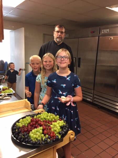 They also decorated the Icon of Transfiguration adorning the Icon with beautiful arrangements of roses and flowers . Father spoke to the children of the feast and the significance of the blessing of the grapes and fruits of the first harvest.