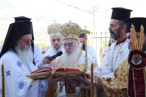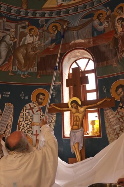 Në përgatitjen e altarit të kishës dhe Shërbesën e Shenjtërimit mori pjesë igumeni Arsen dhe vëllazëria e Manastirit të Fjetjes të së Tërëshenjtës Mari në Molivdoskepasto, pranë vijës kufitare.