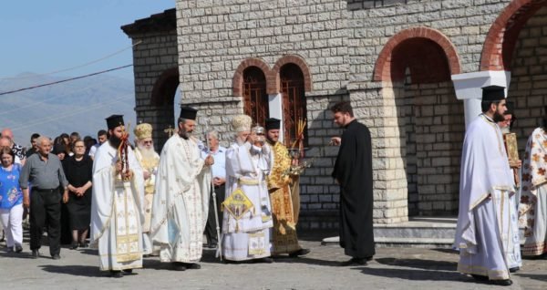 Me bekimet e Kryepiskopit të Tiranës, Durrësit dhe të Gjithë Shqipërisë, Anastasit, Mitropoliti lokal bashkë me Mitropolitin e Amantias, Hirësi Nathanailin, dhe me pjesëmarrjen e shumë klerikëve e besimtarëve të zonës, kryen Shërbesën e Shenjtërimit të Altarit, ditën kur Kisha jonë Orthodhokse kremton panairin e Ngjitjes së Zotit Krisht në Qiej, të cilit i është dedikuar dhe kisha.