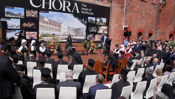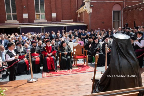 At the unveiling ceremony, in addition to the “host,” His Grace Bishop Evmenios of Chora, the following members of the Patriarchal entourage were present: Their Eminences, Metropolitan Kyrillos of Imvros and Tenedos, and Metropolitan Filotheos of Thessaloniki, The Very Reverends, Grand Protosyncellus Archimandrite Gregory, and Grand Ecclesiarch Archimandrite Aetios, Director of the Personal Patriarchal Office, the Reverend Patriarchal Deacon Evlogios, Codifier of the Holy and Sacred Synod, the Righteous Nun Iakovi, Abbess of the Holy Monastery of St John the Baptist in Akritochori,the Honourable Archon Didaskalos of the Nation Mr Konstantinos Delikostantis, Director of the First Patriarchal Office, and the Honourable Archon Didaskalos of the Church Mr Theodoros Yiangou, Professor of the Theological School at the Aristotle University of Thessaloniki, the Honourable Mr Nicholas-George Papachristou, Director of the Patriarchal Press and Communication Office, and Mr Themistocles Karanikolas, from the Patriarchal staff as well as the Catholicos Patriarch of the Assyrian Church of the East His Holiness Mar Awa, Their Eminences, Metropolitan Ezekiel of Dervis and Metropolitan Seraphim of Sevasteia, the Venerable God-loving Bishops of the Holy Archdiocese of Australia, the Greek Ambassador to Australia, Mr Stavros Venizelos, the High Commissioner of Cyprus, Mr Antonis Sammoutis, the Consuls General of Greece in Melbourne, Mr Emmanuel Kakavelakis and in Adelaide, Ms Alexandra Theodoropoulos, the Federal MP Ms Maria Vamvakinou, and the parents of Archbishop Makarios of Australia, Emmanuel and Fotini Griniezakis.
