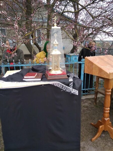 “In the morning we were called by our fellow villagers who told us to go on the road and take our property,” one of the parishioners, who refused to give her name out of fear of harassment, told the UOJ. “We quickly got together and ran: in the middle of the street there was a throne with the Holy Gifts, a seven-branded candlestick, and those who had committed it were rejoicing and waiting for some investigator who was supposed to come soon.”