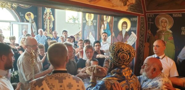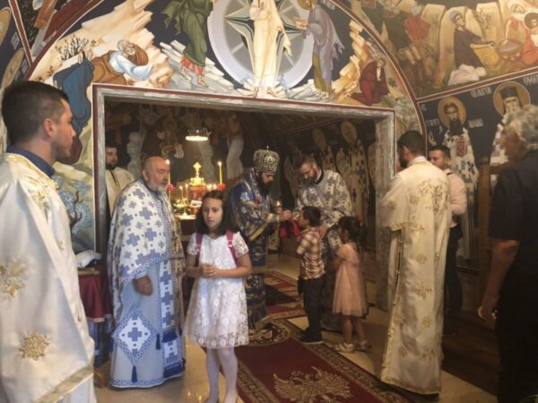 30/08/2019 30/08/2019 Саслуживали су архимандрит Мирон (Вучићевић), настојатељ манастира; протојереј-ставрофор Јован Клајић, парох у пензији; и ђакон Срђан Лукић из Борова Насеља. Пред почетак Литургије Преосвећени Владика је рукопроизвео г. Јована Секулића, вероучитеља из Вуковара, у чин чтеца. Светој Литургији присуствовали су гђа Мира Николић, амбасадор Републике Србије у Републици Хрватској; г. Срђан Јеремић, председник Заједничког већа...