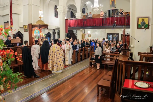 With the Blessing of His Eminence Archbishop Makarios of Australia, His Grace Bishop Elpidios of Kyanea, assisted by the clergy of the Archdiocesan District of Perth, officiated at the Vespers of Love which took place at the Holy Church of Saints Constantine and Helene, Perth.
