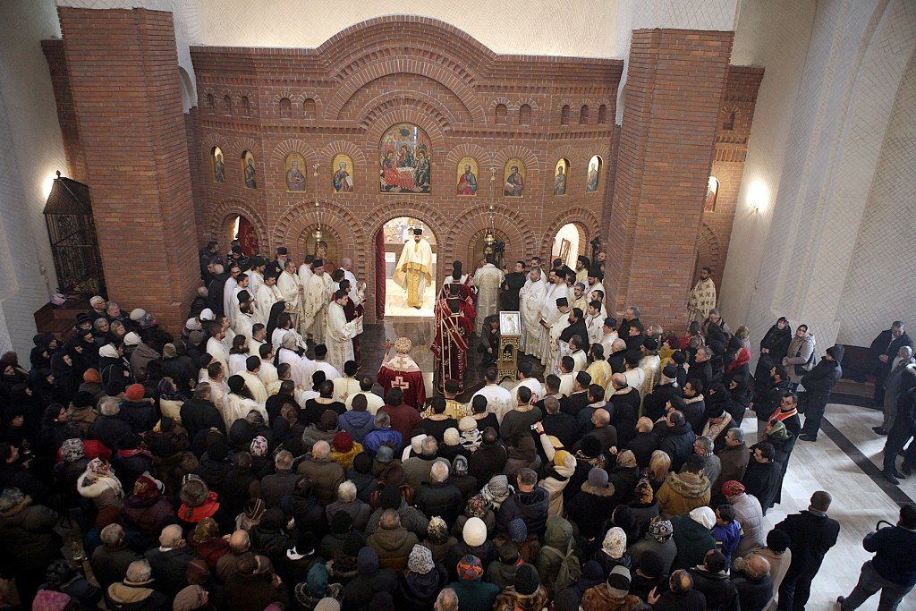 După slujba de sfințire a fost oficiată pentru prima dată Sfânta Liturghie în noua catedrală.