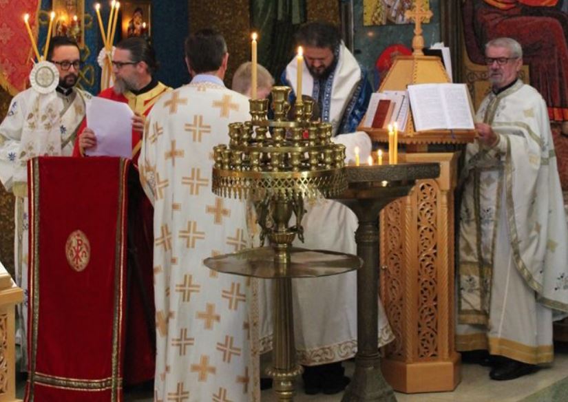 After the reading of the Holy Gospel, Bishop Maxim shared the joy of the Lord’s day and the Sunday of the Holy Forefathers, the second Sunday before the Feast day of the Nativity of our Lord by giving his hierarchical homily on the theme of the feast day and the Gospel of St. Luke 14:16-24. He reminded the flock that we together serve the Liturgy to partake of Holy Communion and to participate in the Heavenly Kingdom here and now. The Liturgy is the Heavenly Banquet to which our Lord invites us to partake and enter into communion with Him, to be united with Him, to live with Him and His eternal life. God invites us, but it is up to each of us how and when, that is, in which manner we will respond to that call, whether with excuses as those invitees in today’s Gospel or as the Holy Forefathers in the Old Testament, and the Apostles and all the saints to this day. If we respond positively and with faith to God’s call we will become ‘chosen ones of God’ and the participants of the banquet, that is, the Heavenly Kingdom.