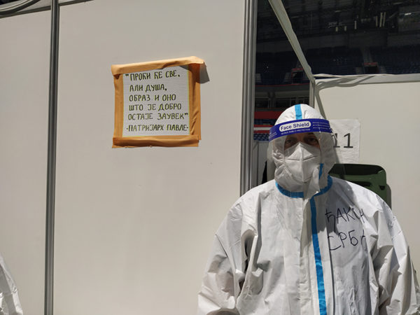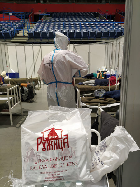 With the blessing of His Holiness Serbian Patriarch Porfirije and with the approval of the Ministry of Defense, representatives of the Serbian Orthodox Church visited the Temporary COVID Hospital in Stark Arena in Belgrade on March 17, 2021 (photo gallery).