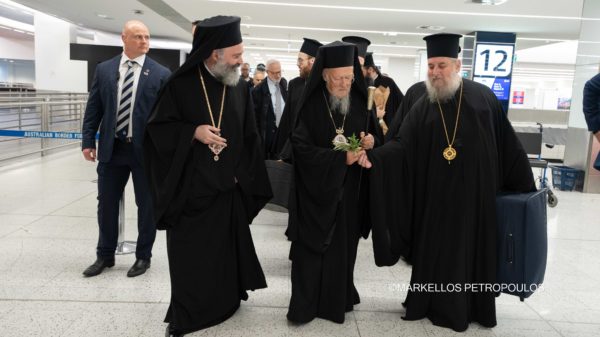 On Friday evening 4th October, His All-Holiness Ecumenical Patriarch Bartholomew arrived at Sydney International Airport as part of his official visit to Australia, where he will preside over the centennial celebrations of this significant province of the Ecumenical Throne in the fifth continent. The airport was filled early with Orthodox Christians and Australian citizens of all ages, their eyes reflecting the fervent desire of their souls to greet the First of Orthodoxy and their spiritual father.