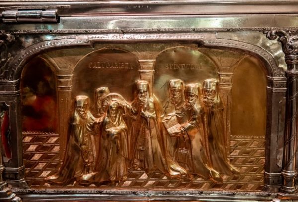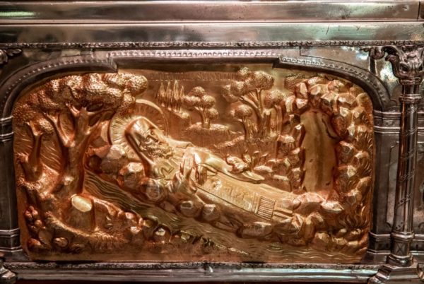 In 1786, the relics of St. Demetrios were placed in a wooden reliquary, clad in silver in some places. The coffin was made by Metropolitan Gregory II of Wallachia.
