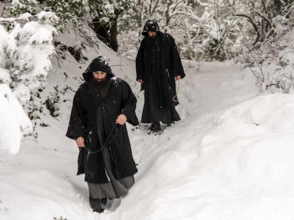 In the photo, some monks from Vatopedi on the footpaths of Mount Athos