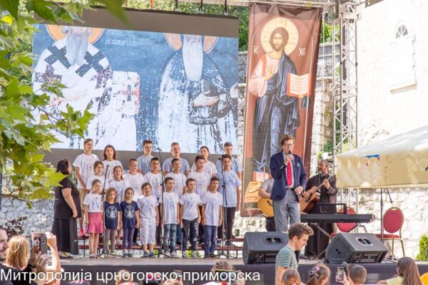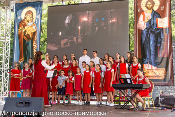 Затим је почео дечји програм у току којег су полазници школа веронауке из свих крајева Црне Горе показали своје знање и умеће из веронауке, цртања, рецитовања, хорског и соло певања…