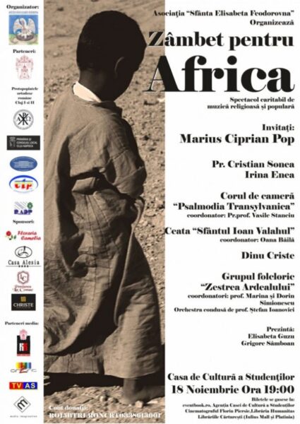 La Casa de Cultură a Studenţilor Cluj-Napoca va fi organizat luni, de Asociaţia „Sfânta Elisabeta Feodorovna”, concertul caritabil „Zâmbet pentru Africa”.