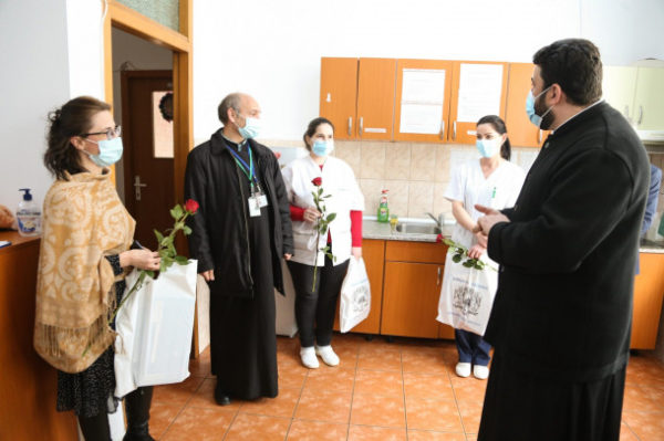 Daruri din partea Arhiepiscopiei Sibiului au primit şi mămicile din Maternitatea Sibiu, precum şi doamnele din personalul medical şi de îngrijire al instituţiei. Din cauza măsurilor de siguranţă sanitară din această perioadă de pandemie, accesul delegaţiei în maternitatea sibiană nu a fost permis. Cele 60 de pachete cu daruri şi florile pregătite au fost înmânate asistentului-şef al maternităţii, Livia Bârsan, şi altor cadre medicale, care le-au împărţit în saloane şi personalului din instituţie.