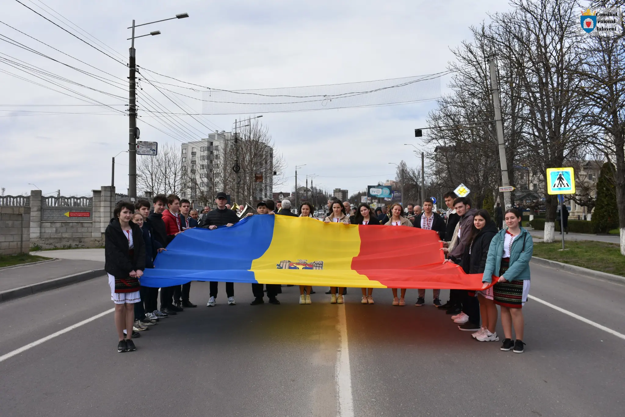 Ulterior, în paradă de sărbătoare, adunarea a defilat pe strada centrală spre Casa raională de cultură „Andrei Ungureanu”. În acompaniamentul Orchestrei raionale de fanfară, iar liceenii din instituțiile de învățământ locale au întins un drapel tricolor imens.