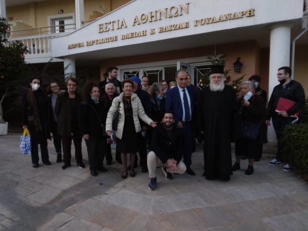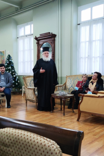 Ο πατέρας Ηλίας έτσι επισκέφθηκε με το Διοικητικό Συμβούλιο της «‘Ενωσης Ορθόδοξων Χριστιανικών Ενώσεων», το αγαπημέ-νο μας Γηροκομείο, που παράλληλα με το πολυεδρικό φιλαν-θρωπικό του έργου, συνιστά από αρχιτεκτονικής απόψεως, ένα από τα κορυφαία νεοκλασικά αρχιτεκτονικά αριστουργήματα της Αθήνας μας, έψαλαν τα κάλαντα και άλλους ωραίους χριστιανικούς ύμνους στους γέροντες και τις γερόντισσες που φιλοξενούνται στο γηροκομείο – προσφέροντας τους ανείπωτη ηθική χαρά και θαλπωρή – ενώ είχαν και μια διεξοδική συζήτη-ση με τους συντελεστές – ηγεσία του Γηροκομείου, για τους στόχους, τις προσδοκίες και τα οράματά του, προκειμένου να επιτελέσει κατά τον καλύτερο δυνατό τρόπο τις ευγενείς κοινω-νικές του στοχεύσεις.