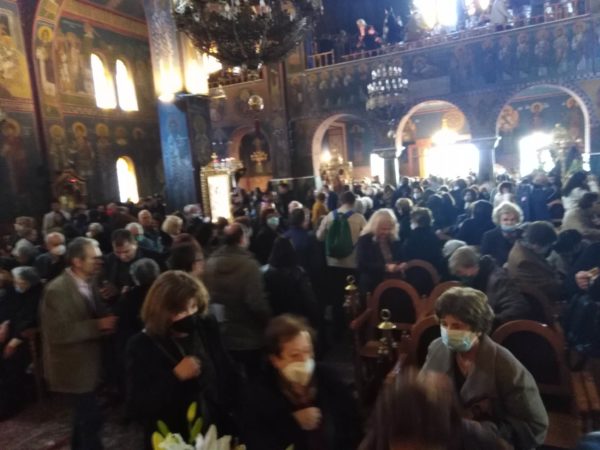 Με το πέρας της θείας λειτουργίας, ο ευσεβής προϊστάμενος του Αγίου Δημητρίου, Αρχιμανδρίτης κ.κ. Πλάτωνας Βακαλάκης – του οποίου η φροντίδα και αγάπη στον καλλωπισμό του ναού, μαζί με τους ανύσταγους φροντιστές του, τον νεωκόρο κ-ο Βασίλειο Γιαννακόπουλο, την επιμελήτριά του Δ/δα Κυριακή Κωνσταντοπούλου, τους ευγενείς εθελοντές του ναού και το ενοριακό συμβούλιο, ήταν έκδηλες παντού – αφού διαβίβασε το διάστικτο από αγάπη ευγενές μήνυμα του Αρχιεπισκόπου μας Αθηνών και πάσης Ελλάδος κ.κ. Ιερωνύμου για την ιερή ημέρα της Κυριακής της Ορθοδοξίας, ευχήθηκε σε όλους Χρόνια Πολλά και οι πάνσεπτες ιερές μας εικόνες, να σκέπουν και να ευλογούν όλον τον κόσμο.