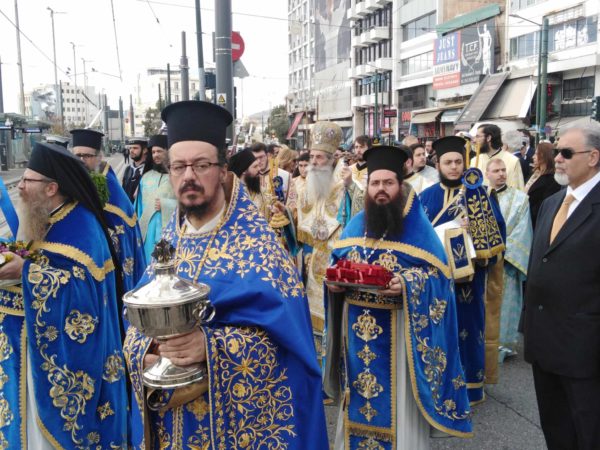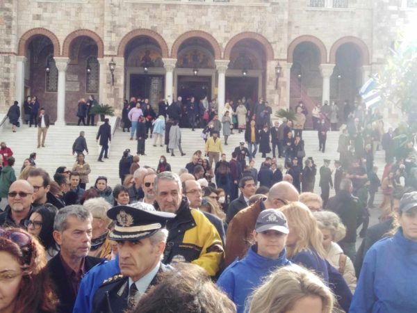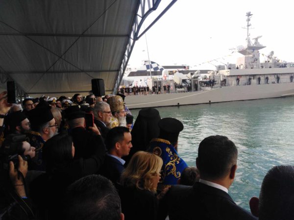 Σύσσωμος λοιπόν ο λαός του Πειραιά – που πρωτοπόρησε πάντοτε στην οικονομική ανασυγκρότηση και πολιτισμική ευημερία της πατρίδος μας – και της Αττικής, προσήλθε στον ιερό ναό της Αγίας Τριάδας του Πειραιά, όπου και έλαβε χώρα πανηγυρική δοξολογία και εν συνεχεία ο αγιασμός των Υδάτων στο λιμάνι του Πειραιά.