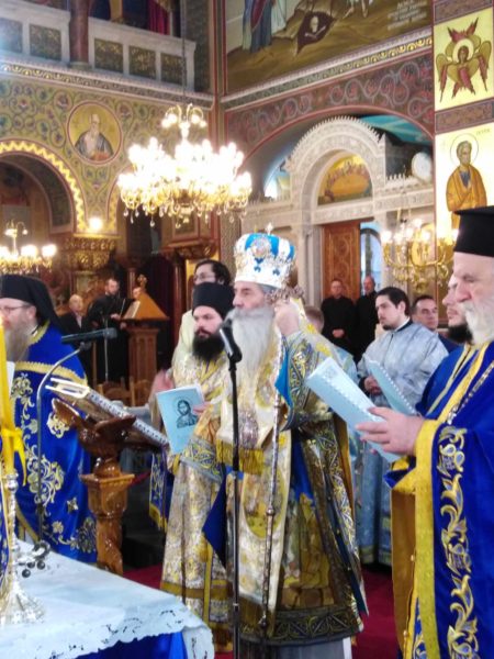 Της πανηγυρικής δοξολογίας, χοροστάτησε ο ευσεβής Μητροπολίτης Πειραιώς κ.κ. Σεραφείμ – που κοσμεί την ελλαδική εκκλησία, με την ευρυδιάστατη θεολογική, νομική του παιδεία και το εμπνευσμένο από τις αξίες τη αγάπης και της ηθικής αρετής, κοινωνικό του έργο, συγχοροστατούντων του ευλαβούς Πρωτοσυγκέλου της Μητροπόλεως Πειραιώς Αρχιμανδρίτη κ.κ. Νήφωνος και των υπολοίπων ευλαβών ιερέων της Αγίας Τριάδος Πειραιώς, Πανοσ. Αρχιμανδρίτη π. Δανιήλ Ψωίνου, Αιδεσιμ. Πρωτοπρεσβύτερου π. Χρήστου Ρισάνου, Αιδεσιμ. Πρωτοπρεσβύτερου π. Παναγιώτη Κατσικερού, Ιερολ. Αρχιδιάκονου π. Σιλουανού Τζουμανέκα.