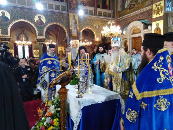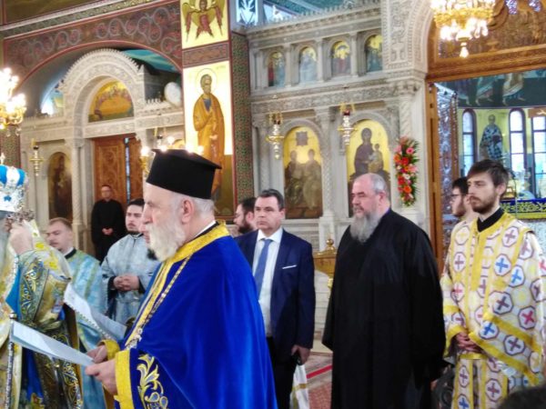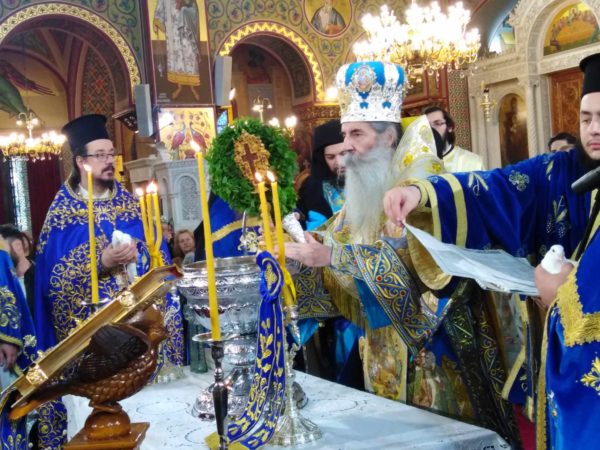 Επιβλητικός ο καλλιεπής ναός της Αγίας Τριάδας και σημαιοστολισμένος με την γαλανόλευκη και τους χρυσοπόρφυρους σταυραετούς του Βυζαντίου, κατηύγαζε την άφατη κατάνυξη των πιστών, αλλά και την ιερότητα των Αγίων Θεοφανείων, που σηματοδοτούν την αναγέννηση και την ηθική αναβάπτιση των ανθρώπων.