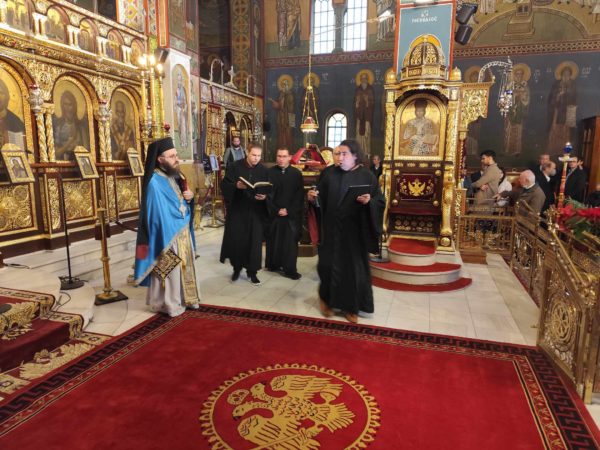 Της πανηγυρικής δοξολογίας, χοροστάστάτησε ο ευλαβής Αρχιμανδρίτης και ιερατικός προϊστάμενος του ναού Πατέρας κ.κ. Πλάτωνας Βακαλάκης, συνεπικουρούμενος και από τους άλλος ιερείς του ναού, κ.κ. Κίκιζα Γεώργιο, Κωνσταντέλλο Δημήτριο καιΓασπαράτοΑθανάσιο. Ενώ ξεχωριστή ηθική ευδία μας πρόσφεραν οι καλλίφωνοι ιεροψάλτες του ναού, στο δεξί αναλόγιο – κος Γιάννης Πλευρίτης μετά των άξιων συνεργατών του ιεροψαλτών και στο αριστερό οι κ.κ. Δημήτρης Κοταρίδης και Μάνος Δεστούνης.