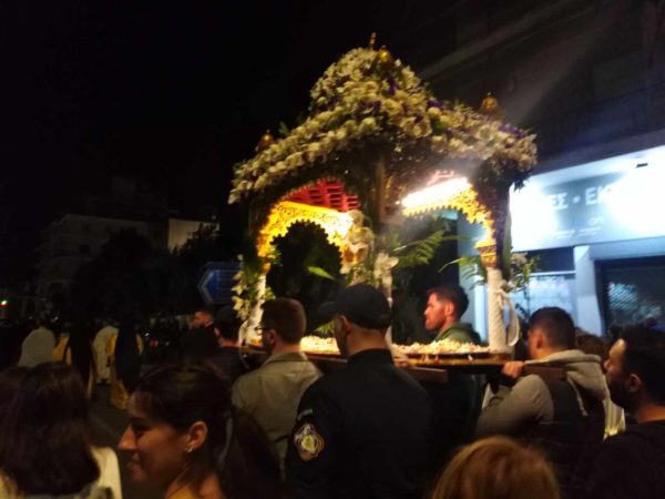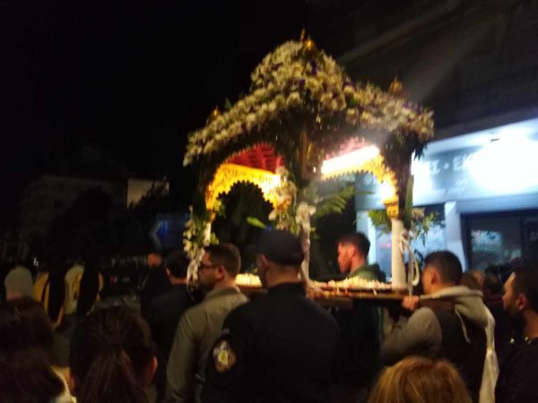 Σημειώνουμε ακόμα, ότι ρίγη συγκίνησης προξένησε κατά την επάνοδο της πομπής του επιταφίου στον Άγιο Δημήτριο, η ανάκρουση της πόρτας κατά το Αγιορείτικο έθιμο με το σφυρί, από τον προϊστάμενο του Αγίου Δημητρίου, σεπτό Αρχιμανδρίτη κ.κ. Πλάτωνα Βακαλάκη, που μας μετέδωσε μια έξοχη ηθικά και μοναδική αγιορείτικη ατμόσφαιρα. Λαμπρός ο στολισμός και η αισθητική επιμέλεια του Αγίου Δημητρίου, από το ενοριακό συμβούλιο, το Τμήμα Νεότητας του ναού, αλλά και τον άοκνο νεωκόρο κ-ο Βασίλη Γιαννακόπουλο, καθώς και την φροντίστρια κα Κυριακή.