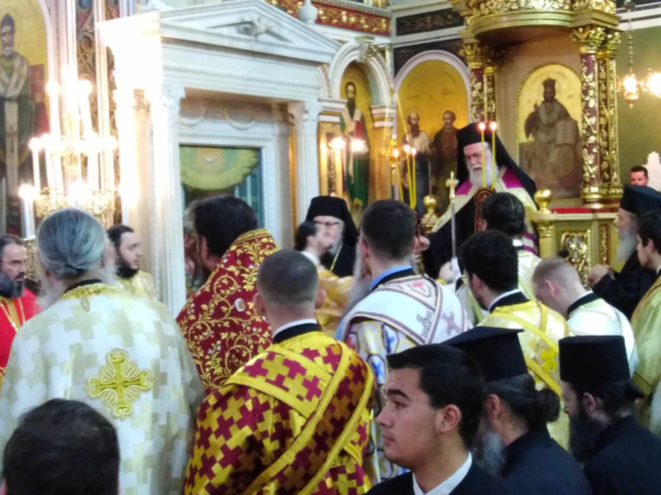 Στο μεγαλοπρεπή και πανέμορφο λοιπόν ναό του Αγίου Κωνσταντίνου και Ελένης στον Πειραιά, με τη συμμετοχή των προαναφερομένων μας Μητροπολιτών και Επισκόπων, την καταιγιστική παρουσία του φιλάγιου λαού του Πειραιώς και πλήθους εκπροσώπων από το φάσμα των γραμμάτων της πολιτικής και του πολιτισμού, πραγματοποιήθηκε με την προ-σήκουσα ιεροπρέπεια, η πολυαρχιερατική πανηγυρική λειτουργία για τον Αγιομάρτυρα Σεραφείμ, μέσα σε μία ατμόσφαιρα ευλάβειας και κατάνυξης. Με την αποπεράτωση της λειτουργίας ο σεπτός και εορτάζων Μητροπολίτης Πειραιώς κ.κ. Σεραφείμ, ευχαρίστησε τους ευσεβείς ιεράρχες που τίμησαν με την παρουσία τους τον Αγιομάρτυρα Σεραφείμ, αλλά και για τις ευγενείς ευχές τους και ευχήθηκε σε όλους τους παριστάμενους, ο ιερομάρτυρας της Ορθοδοξίας μας Σεραφείμ, που με το φρικτό του θάνατο, κέρδισε τη βασιλεία των ουρανών, να χαρίζει υγεία, πνευματική ευημερία και να συνιστά ηθικό οδοδείκτη στη ζωή μας σε κάθε μας βήμα. Στην αντιφώνησή του ο ευλαβής Μητροπολίτης Ιλίου Αχαρνών και Πετρουπόλεως κ.κ. Αθηναγόρας, ευχαρίστησε τον κ-ο Σεραφείμ για την ευγενή του πρόσκληση, και αναφέρθηκε διεξοδικά την ηθική αρετή του Αγιομάρτυρα της εκκλησίας μας Σεραφείμ, αλλά και στο διαρκές και επίκαιρο ηθικά μήνυμα του, για την απαραίτητη προσήλωση μας στην ορθόδοξη πίστη και στην κοινωνική μας εκπόρευση, με ηθική σταθερά, τους πνευματικούς αγώνες, το αίμα και τη θυσία του Αγίου της εκκλησίας μας.