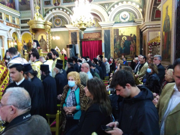 Σε κλίμα βαθιάς κατάνυξης και συγκίνησης, έλαβε χώρα με την καταιγιστική παρουσία του λαού του Πειραιώς, η πολυαρχιερατική πανηγυρική λειτουργία, για την σεπτή μνήμη του Αγιομάρτυρα Σεραφείμ, Επισκόπου Φαναρίου και Νεοχωρίου, στον περικαλλή ναό του Αγίου Κωνσταντίνου Πειραιώς και με την ευκαιρία παράλληλα της ονομαστικής εορτής του ευσεβούς Επισκόπου Πειραιώς κ.κ. Σεραφείμ. Κατέλαμπε έτσι στη χαρμόσυνη ατμόσφαιρα της εορτής ο λαμπροστόλιστος ναός του Αγίου Κωνσταντίνου και Ελένης στον Πειραιά, από τη βυζαντινή πορφύρα και την γαλανόλευκη, δημιουργώντας μία μοναδική ατμόσφαι-ρα ηθικής έξαρσης και κατάνυξης. Της πανηγυρικής πολυαρχιερατικης λειτουργίας, χορο-στάτησε ο ευσεβής Μητροπολίτης Ιλίου Αχαρνών και Πετρουπόλεως κ.κ. Αθηναγόρας, συγχοροστατούντων των σεπτών Μητροπολιτών Βύρωνος Καισαριανής και Υμηττού κ.κ. Δανιήλ, Ύδρας Σπετσών και Αιγίνης κ.κ. Εφραίμ, Φθιώτιδος κ.κ. Συμεών, Πατρών κ.κ. Χρυσοστόμου, Περιστερίου κ.κ. Γρηγορίου, Βρεσθένης κ.κ. Θεοκλήτου, Πτολεμαΐδος κ.κ. Εμμανουήλ, αλλά και των ευλαβών επίσης Επισκόπων Κορωνείας κ.κ. Παντελεήμονος και Ρογών κ.κ. Φιλοθέου, του πρωτοσυγκέλου της Ιεράς Μητροπόλεως Πειραιώς κ.κ Νήφωνος και τη συμμετοχή επίσης πλήθους ιερέων από παρακείμενες ενορίες του Αγίου Κωνσταντί-νου, που προσήλθαν ευλαβικά για να τιμήσουν τη μνήμη του Αγιομάρτυρα Σεραφείμ, αλλά και να ευχηθούν στον εκλεκτό ιεράρχη της εκκλησίας της Ελλάδος, που διακρίνεται για την πολυμερή θεολογική, νομική του παιδεία, το εμπνευσμένο θεολογικό συγγραφικό του έργο, αλλά και το ευγενές ήθος του κ.κ. Σεραφείμ.