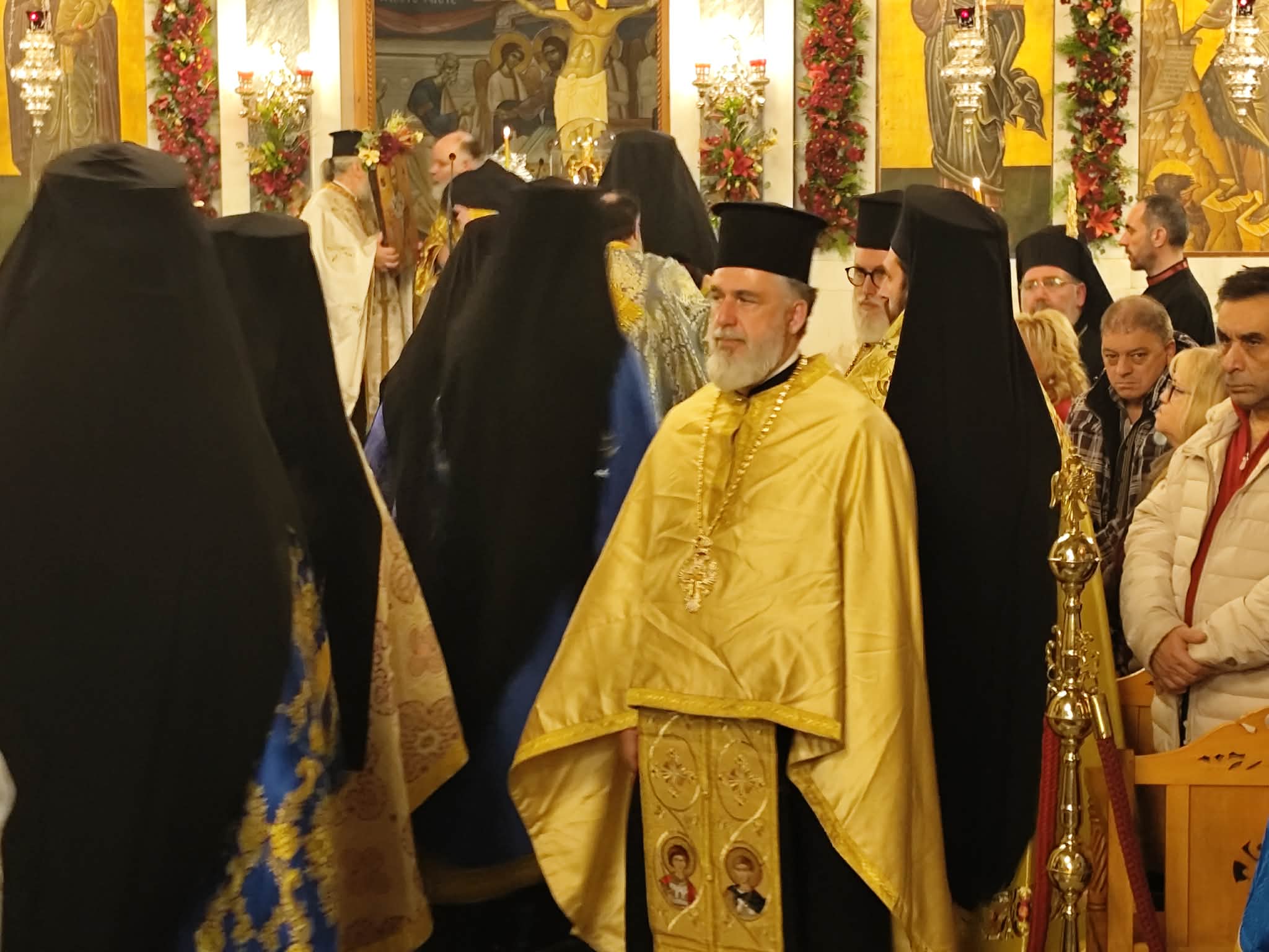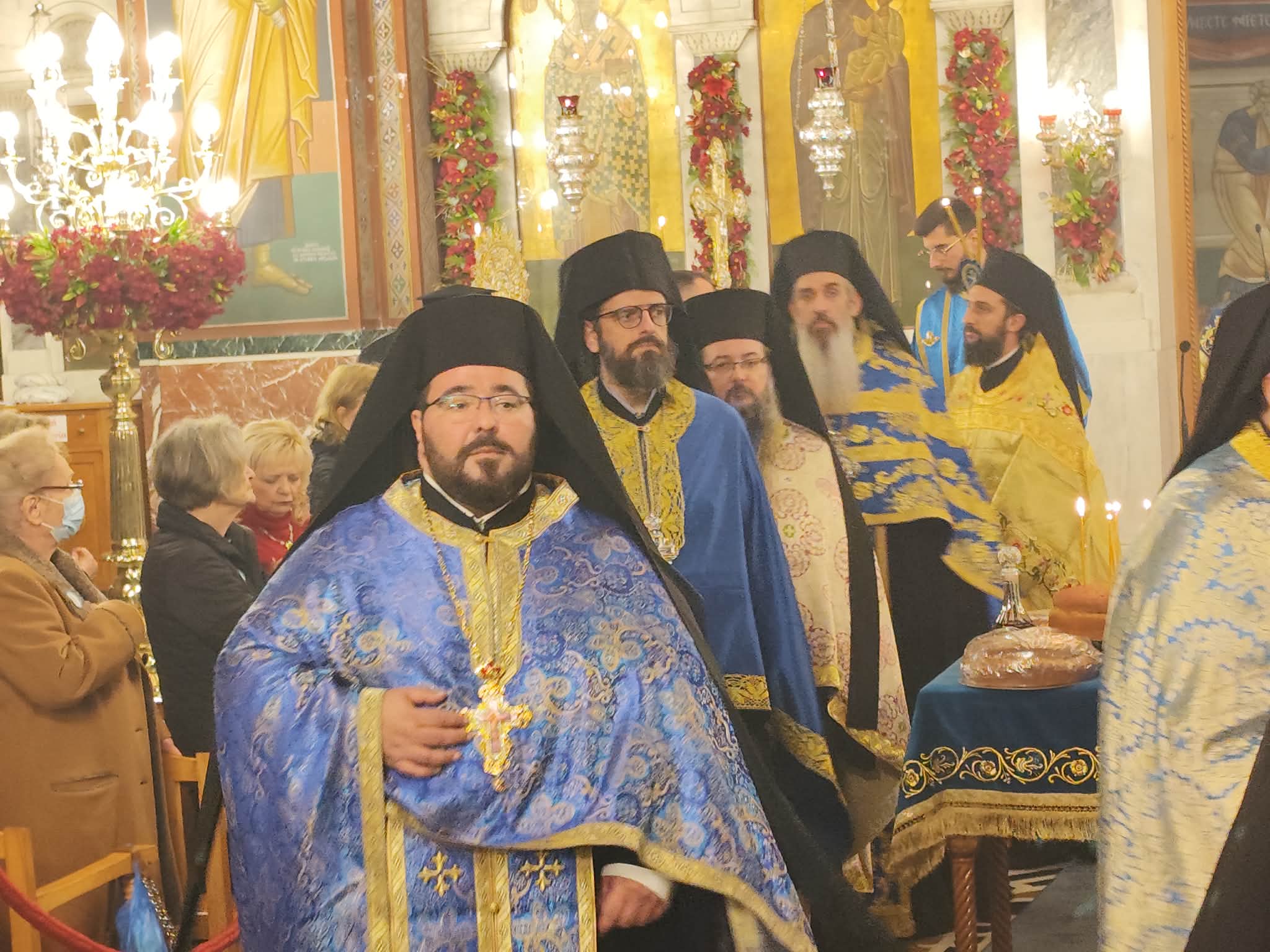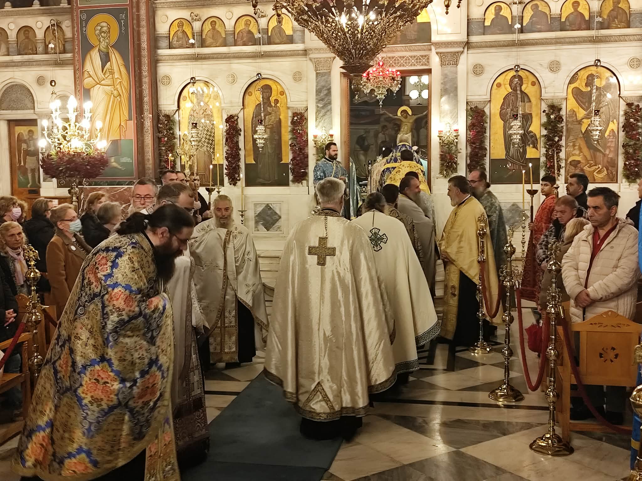 Του πανηγυρικού εσπερινού χοροστάτησε ο σεπτός Επίσκοπος Χριστουπόλεως κ. Βαρνάβας, συγχοροστατούντων του ευλαβούς προϊσταμένου του ναού Αρχιμανδρίτη π. Αλέξιου Σάπικα, των υπολοίπων ευσεβών πρωτοπρεβύτερων του ναού Ζαχαρία Ευαγγέλου, Παπανδρέου Δημητρίου και Γανωτή Γεωργίου, αλλά και του ευλαβούς διακόνου Αστερίου Αποστόλου. Με το πέρας του πανηγυρικού εσπερινού, τον λόγο έλαβε ο ευλαβής Επίσκοπος κ. Βαρνάβας και αφού πρωτίστως διεβίβασε το πανανθρώπινο μήνυμα αγάπης και ευλάβειας για την ιερή ημέρα του Αγίου Νικολάου, του Αρχιεπισκόπου Αθηνών και πάσης Ελλάδος κ.κ. Ιερωνύμου, ευχήθηκε στους πιστούς Χρόνια Πολλά και η σεπτή μνήμη του Αγίου Νικολάου, να τους εμπνέει και να τους οδηγεί σε δρόμους χριστιανικής αρετής και ηθικής ευημερίας.