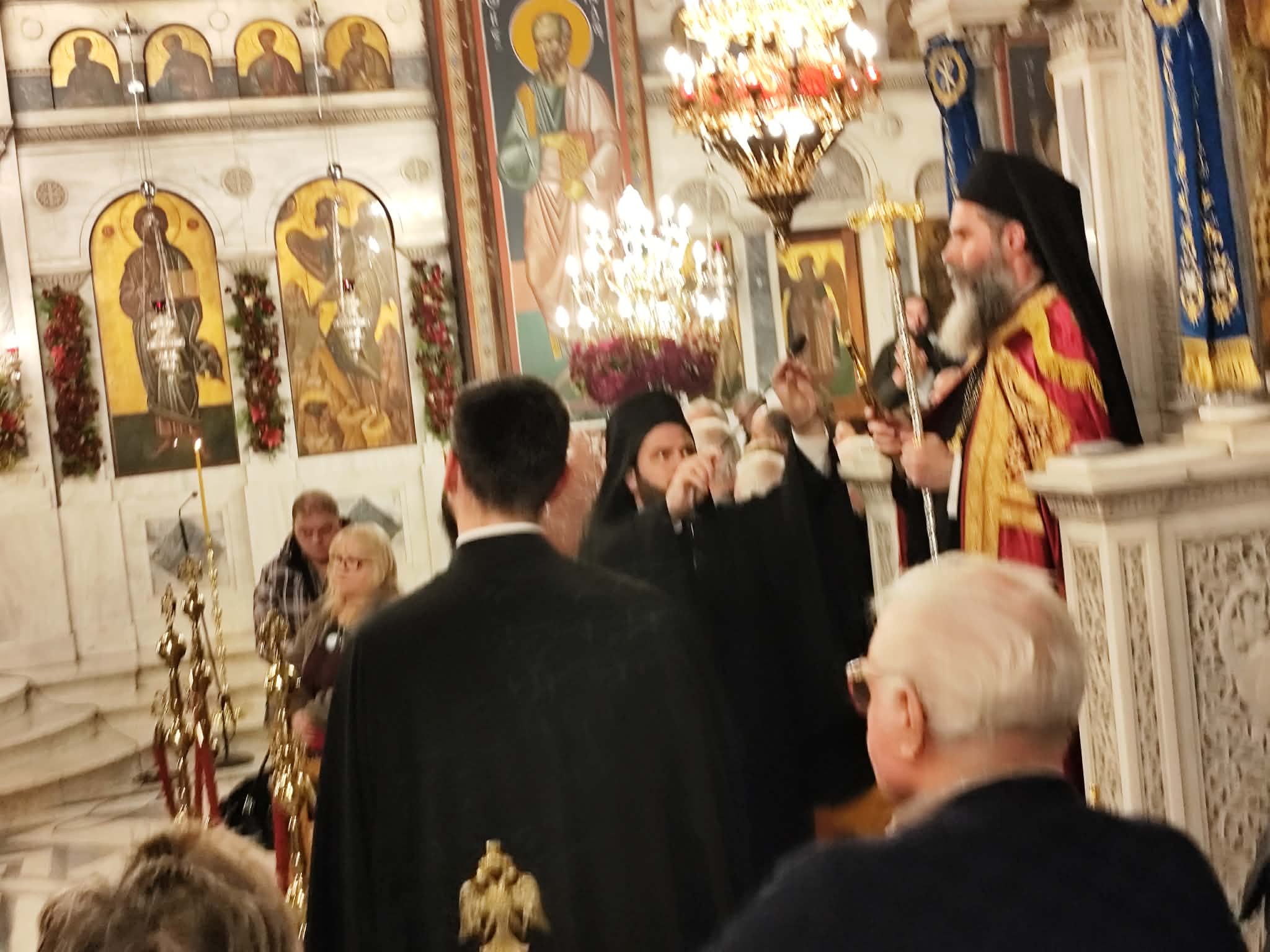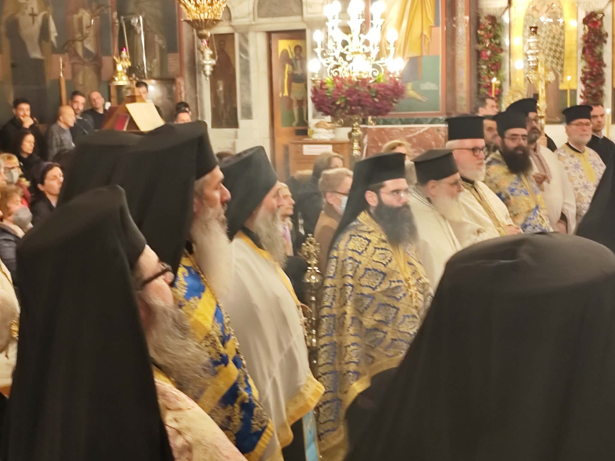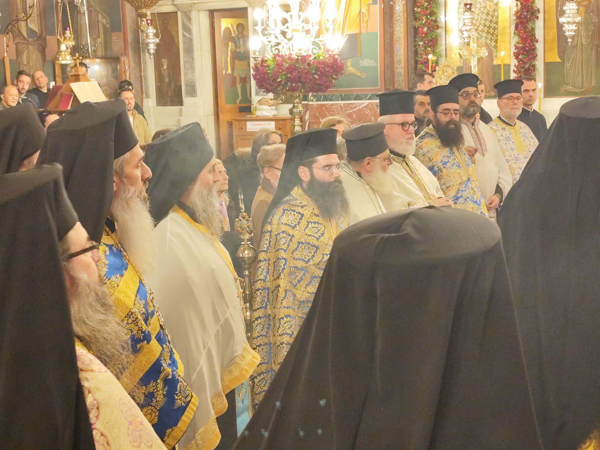 Του πανηγυρικού εσπερινού χοροστάτησε ο σεπτός Επίσκοπος Χριστουπόλεως κ. Βαρνάβας, συγχοροστατούντων του ευλαβούς προϊσταμένου του ναού Αρχιμανδρίτη π. Αλέξιου Σάπικα, των υπολοίπων ευσεβών πρωτοπρεβύτερων του ναού Ζαχαρία Ευαγγέλου, Παπανδρέου Δημητρίου και Γανωτή Γεωργίου, αλλά και του ευλαβούς διακόνου Αστερίου Αποστόλου. Με το πέρας του πανηγυρικού εσπερινού, τον λόγο έλαβε ο ευλαβής Επίσκοπος κ. Βαρνάβας και αφού πρωτίστως διεβίβασε το πανανθρώπινο μήνυμα αγάπης και ευλάβειας για την ιερή ημέρα του Αγίου Νικολάου, του Αρχιεπισκόπου Αθηνών και πάσης Ελλάδος κ.κ. Ιερωνύμου, ευχήθηκε στους πιστούς Χρόνια Πολλά και η σεπτή μνήμη του Αγίου Νικολάου, να τους εμπνέει και να τους οδηγεί σε δρόμους χριστιανικής αρετής και ηθικής ευημερίας.