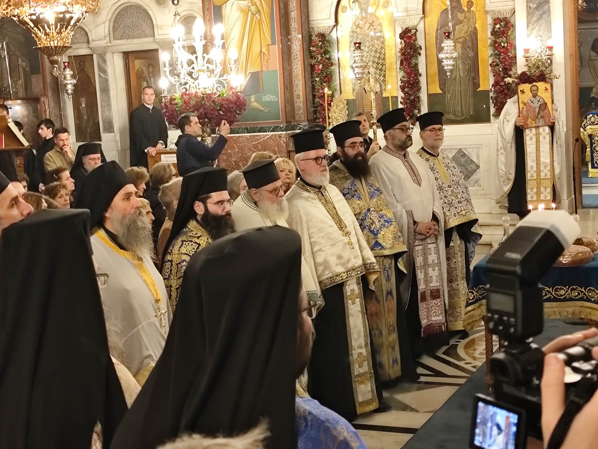 Μέσα σε ένα κλίμα άφατης κατάνυξης και με την καταιγιστική παρουσία, τόσο του λαού του 5-ου Διαμερίσματος των Αθηνών, όσο και Αθηναίων από άλλες συνοικίες, τελέστηκε την Παρασκευή 5 Δεκεμβρίου 2025, στον περικαλλή ναό του Αγίου Νικολάου Αχαρνών, ο πανηγυρικός εσπερινός, για την σεπτή μνήμη του Αγίου Νικολάου, Επισκόπου Μύρων και κραταιάς φυσιογνωμίας της Ορθοδοξίας μας, που εδραίωσε με τον εμπνευστικό χριστιανικό του φρόνημα, την ηθική υπεροχή της χριστιανικής διδασκαλίας στην περιοχή της Λυκίας – αλλά και με τα θεάρεστα θαύματά του, σε όλη την οικουμένη – ενώ επισφράγισε με την θεολογική του σοφία και εμβρίθεια, την Α΄ Οικουμενική Σύνοδο.