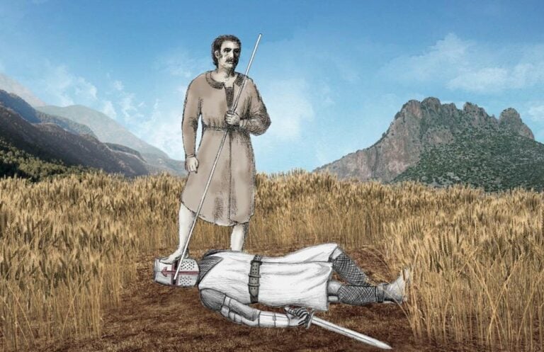 «εβάλαν οι χωριάτες…και εις το ΛευκόνοικονρήγανΑλέξην και όλοι οι χωργιάτεςεδόθησαν εις την ’πόταξίν του και αννοίξαν τες αποθήκες και εκουβαλούσαν τα κρασία τους καλοπίχερους, έτεροι επαίρναν το ψουμίν από τ’ αλώνια, άλλοι τα ζαχάριτα και τα ποδέλοιπα πράγματα τους καλούς λας».