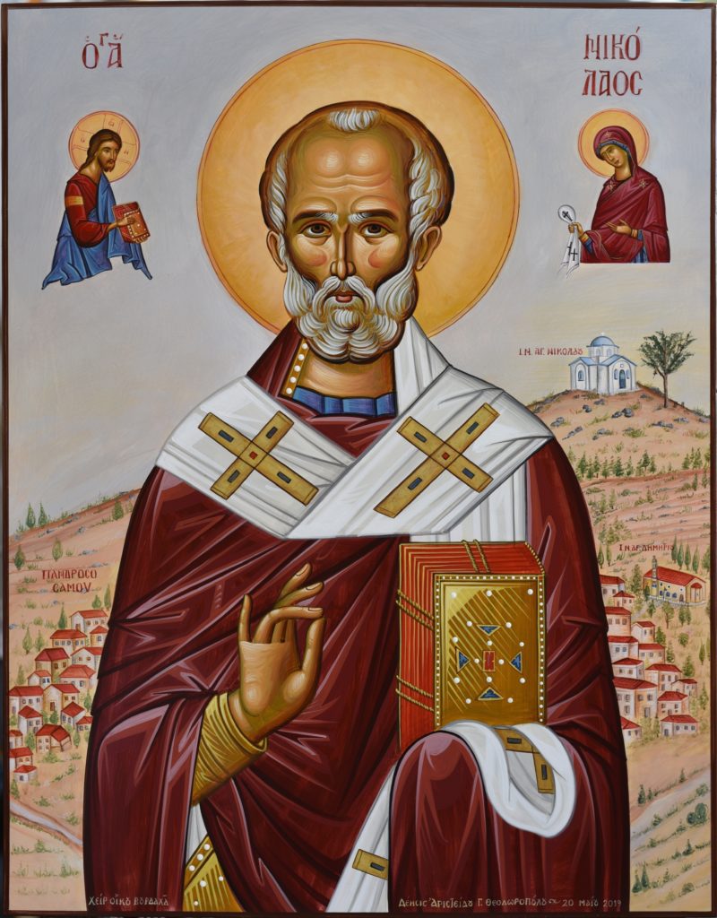 Στο ακριτικό αιγαιοπελαγίτικο νησί της Σάμου με τις απαράμιλλες φυσικές ομορφιές και την πλούσια πολιτιστική κληρονομιά ο λαοφιλής σε Ανατολή και Δύση προστάτης άγιος των θαλασσών και των ναυτικών,ο θαυματουργός άγιος Νικόλαος, απολαμβάνει ξεχωριστή τιμή στη θρησκευτική ζωή των ευσεβών κατοίκων του. Αυτό άλλωστε αποδεικνύεται και από τον μεγάλο αριθμό των τιμωμένων επ’ ονόματί του μεγάλων και μικρών ιερών ναών, οι οποίοι κοσμούν πόλεις και χωριά, ακρογιαλιές και εξοχικές ορεινές τοποθεσίες. Ανάμεσα στους πολυάριθμους ναούς του αγίου στο εύανδρο νησί της Σάμου αξιομνημόνευτοι είναι ο ανακαινισθείς το 1857 περικαλλής μητροπολιτικός ναός του αγίου Νικολάου στο Βαθύ Σάμου,την ιστορική πρωτεύουσα του νησιού,όπου ο λαοφιλής και θαυματουργός άγιος τιμάται ως πολιούχος και προστάτης της πόλεως,ο θεμελιωθείς το 1841 ενοριακός ναός του αγίου στο χωριό Κουμαίικα και ο χρονολογούμενος από το 1500 ιστορικός ναός του αγίου Νικολάου του Αναπλιώτου στο παραδοσιακό Παλαιό Καρλόβασι.
