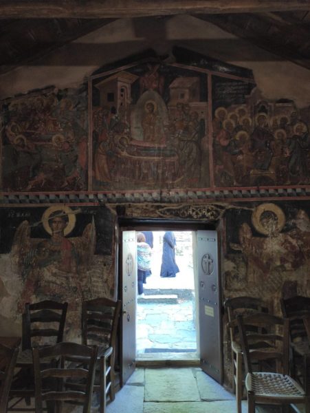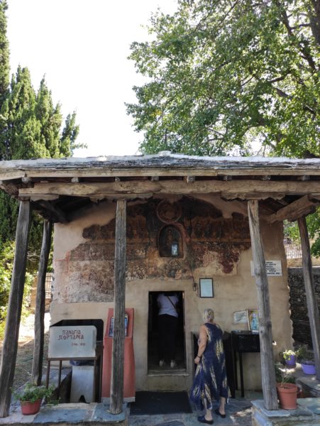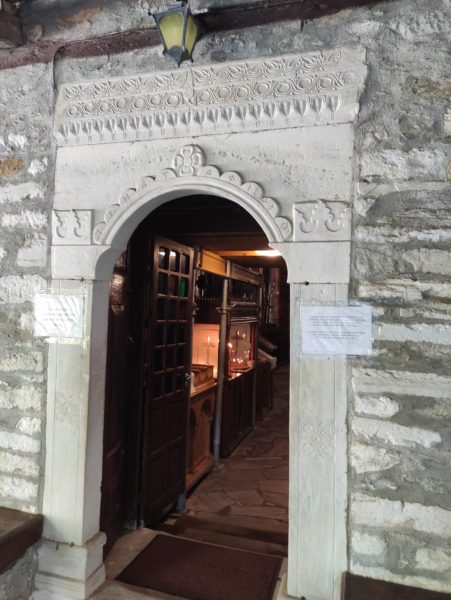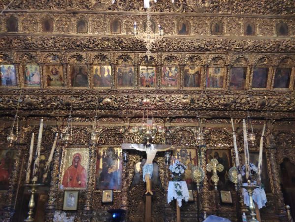 Προσκυνήσαμε το ιερώτατο κειμήλιο της Μονής, την τιμία κάρα του Αγίου Συμεών, καθώς και τεμάχιο της χειρός του Αγίου Γερασίμου του νέου και θαυμάσαμε το εντυπωσιακό επιχρυσωμένο τέμπλο με τις περίτεχνες βυζαντινές εικόνες.