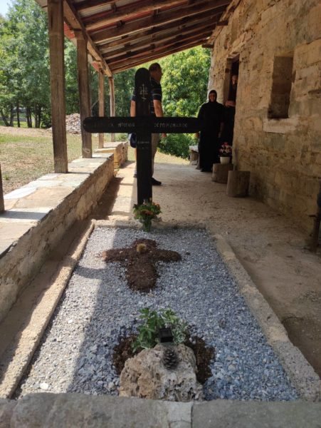 Το ίδιο λιτός και απέρριτος ο τάφος του «παππού» στο κοιμητήριο της Μονής, όπου τελέσαμε το ιερό τρισάγιο και ζητήσαμε την ευχή του «εν ουρανοίς αυλιζομένου» οσίου γέροντος Γαβριήλ. Αναχωρήσαμε από το φιλόξενο και τόσο ευλογημένο αυτό Μοναστήρι, κατάφορτοι από ευλογίες αλλά και εμπειρίες μοναδικές.