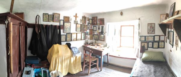 Επισκεφθήκαμε με βαθειά συγκίνηση το «τερπνόν παλάτιον» κατά την προσφιλή έκφραση του μακαριστού και πανθομολογουμένως οσιακής βιοτής γέροντος Γαβριήλ Ντούνη, την μοναχική του παλαίστρα, το ταπεινό κελλάκι του. Μας πλημμύρισε θάμβος και άρρητη ευλογία η επίσκεψίς μας στο μικρό και ταπεινό αυτό κελλί όπου με τον διά «πυρός και σιδήρου» πνευματικό του αγώνα ο άγιος γέροντας Γαβριήλ, το μετέβαλλε σε παράδεισο!