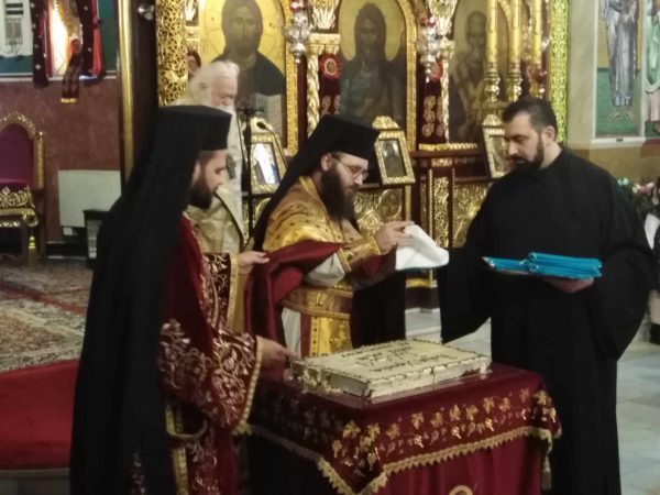 Της θείας λειτουργίας χοροστάστησε ο ευλαβής Αρχιμανδρίτης και προϊστάμενος του ναού κ.κ. Πλάτωνας Βακαλάκης, συγχοροστατούντων των άλλων ευσεβών ιερέων του ναού κ.κ. Κίκιζα Γεωργίου, Κωνσταντέλλου Δημητρίου, Γασπαράτου Αθανασίου και του ευσεβούς διακόνου Αστερίου Αποστόλου. Σημειώνοντας εδώ και την έξοχη παρουσία και συμβολή στην θεία λειτουργία της πρωτοχρονιάς, των ιεροψαλτών του ναού κ.κ. Πλευρίτη Ιωάννη και Δημήτρη Κοταρίδη. Με το πέρας της λειτουργίας επακολούθησε πανηγυρική δοξολογία επι τη ελεύσει του νέου έτους και στην συνέχεια, ο Πατέρας Πλάτωνας ευχήθηκε σε όλους, το νέο έτος 2024 να είναι ευτυχισμένο εποικοδομητικό και να αποτελέσει την απαρχή πνευματικής και ηθικής ευημερίας στη ζωή μας, με κατευθυντήριο δύναμη το Χριστό, που είναι και η μόνη οδός σωτηρίας, από τα φθοροποιά καταναλωτικά μηνύματα της παθογε-νούς εποχής μας. Και επακολούθησε το κόψιμο της παραδοσιακής βασιλόπιτας του ναού. Συγκινητική μάλιστα η στιγμή που ο πατέρας Πλάτωνας, παρέδωσε με αγάπη και σεβασμό ένα κομμάτι βασιλόπιτας – που ήταν και το τυχερό – στην ευσεβεστάτη μητέρα του τ. ιερατι-κού προϊσταμένου του ναού και σημερινού Μητροπολίτη Λαγκαδά, Λητής και Ρεντίνης κ.κ. Πλάτωνος Κρικρή, ο οποίος λάμπρυνε για χρόνια με την ιερατική παρουσία του, τον Άγιο Δημήτριο Αμπελοκήπων. Την μείζονα ημέρα της ιερής πρωτοχρονιάς, τίμησαν με την παρου-σία τους τα μέλη του ενοριακού συμβουλίου και φιλοπτώχου ταμείου, τα οποία ευχαρίστησε για την πολυεδρική προσφορά τους στο ναό, ο πατέρας Πλάτωνας, ενώ αντάλλαξαν θερμές ευχές μεταξύ τους, για μια γόνιμη, καρποφόρα και δημιουργική χρονιά-2024. Διακρίναμε μεταξύ άλλων τους κ.κ. Γιώργο Φωτόπουλο, Αντιπρόεδρο του ενοριακού Συμβουλίου, Κολοκυθά Βασιλική, Σαμορδάνη Κατερίνα, Μανικάκη Ευτυχία κ.α. από το ενοριακό συμβούλιο και φιλόπτωχο ταμείο. Τέλος με πολλήν αγάπη, με το πέρας της πανηγυρικής δοξολογίας, οι ιερείς μας μοίρασαν εξαιρετικής ποιότητας κομμάτια βασιλόπιτας, με την υπομνηστική εικόνα του κορυφαίου ιεράρχη μας, Μεγάλου Βασιλείου.
