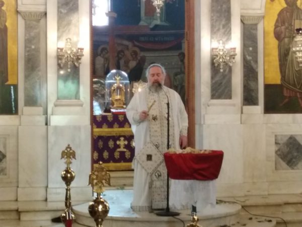 Της λειτουργίας χοροστάτησαν ο ευλαβής προϊστάμενος του ναού Αρχιμανδρίτης κ.κ. Αλέξιος Σάπικας, μετά του ευσεβούς πρωτοπρεσβύτερου Πατρός Δημητρίου Παπανδρέου.