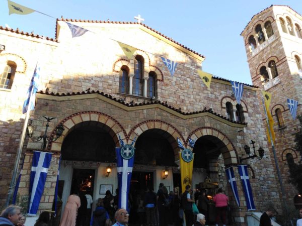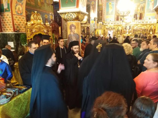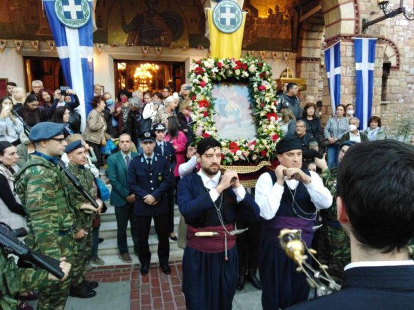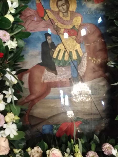 Με την επάνοδο τη εικόνας στον ναό, τον λόγο έλαβε ο ευλαβής επίσκοπος Ευρίπου κ.κ. Χρυσόστομος, που κόσμησε με την ενάρετη θεολογικά παρουσία του το εορταστικό διήμερο του Αγίου Δημητρίου και αφού διεμήνυσε το άχραντο μήνυμα αγάπης του αρχιεπισκόπου μας Αθηνών και πάσης Ελλάδος κ.κ. Ιερωνύμου, ευχήθηκε στο χριστεπώνυμο πλήθος Χρόνια Πολλά και η ευλογία του Αγίου Δημητρίου του Μυροβλήτου, να σκέπει και να χαριτώνει τη ζωή του. Στην αντιφώνησή του, ο ευσεβής προϊστάμενος του Αγίου Δημητρίου Αρχιμανδρίτης ευχαρίστησε τον λαό των Αθηνών για την συγκινητική παρουσία του, τον Θεοφιλέστατο Επίσκοπο Ευρίπου κ.κ,. Χρυσόστομο που τίμησε με την χοροστασία του την εορτή, το ενοριακό συμβούλιο και τους ευγενείς εθελοντές για τον καλλωπισμό του ναού, τις φιλαρμονικές για την χαρμόσυνη παρουσία τους, αλλά και την Ελληνική Αστυνομία, για τα άψογα μέτρα τάξης.