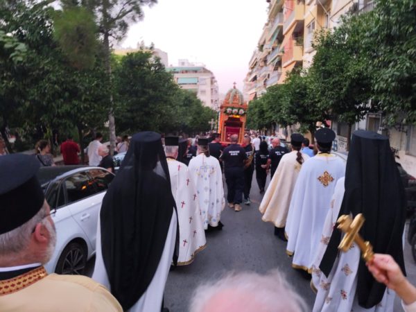 Με το πέρας της λειτουργίας ο Πρωτοσύγκελος της Αρχιεπισκοπής Αθηνών κ.κ. Βαρνάβας, απηύθυνε χαιρετισμό για την σπουδαία και ενάρετη προσωπικότητα του Προφήτη Ηλία και μας συγκίνησε με την ευμέλεια του λόγου του και την θεολογική του πολυμέρεια. Επακολούθησε περιμετρικά του ναού, εκλιτάνευση της ιεράς εικόνας του Αγίου Ηλία, μέσα στην κατανυκτική ατμόσφαιρα του εσπερινού και υπο τους γλυκείς παιάνες της Φιλαρμονικής του Δήμου Αθηναίων. Περιφορά που καταδείκνυε τα άπειρα κοιτάσματα της ευσέβειας του ελληνικού λαού, ο οποίος μέσα στα γλυκά νάματα της βρυσομάνας πηγής της ορθοδοξίας, σφυρηλατεί την ψυχική του ενότητα.