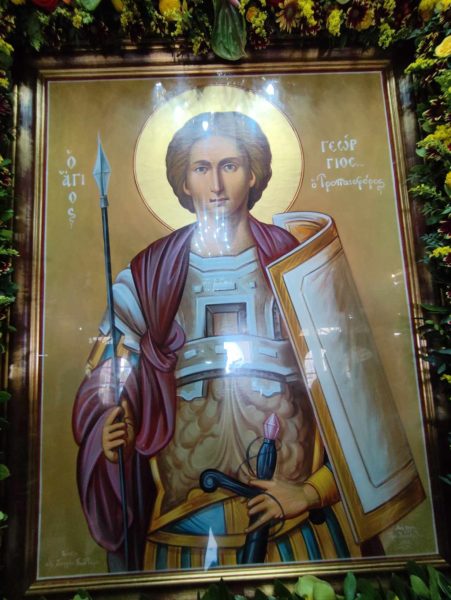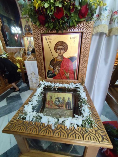 Μέσα στον κατάφορτο από συγκίνηση λαό του 4-ου Διαμερίσματος της Αθήνας – Κολωνός Ακαδημία Πλάτωνος – αλλά και άλλων ευσεβών χριστιανών που προσήλθαν για να τιμήσουν την μνήμη του τροπαιοφόρου Αγίου Γεωργίου, εορτάστηκε την Τετάρτη 23-4-2025 στον λαμπρηφόρο ναό του Αγίου Γεωργίου Ακαδημίας Πλάτωνος, η σεπτή μνήμη του «ενδόξου λέοντος» και «πολύφωτου αστέρος» της ορθοδοξίας μας Αγίου Γεωργίου. Του ενάρετου Γεωργίου, που θυσίασε την έξοχη στρατιωτική καριέρα του, την υψηλή κοινωνική του καταγωγή, αλλά και αυτήν την ίδια του την ζωή, για να διατρανώσει την απαρασάλευτη πίστη στην Χριστιανοσύνη μας. Και ήταν η γλυκιά αύρα του σημερινού ανοιξιάτικου απογεύματος, γονιμοποιημένη από την «θεία ατμόσφαιρα» της μνήμης του Αγίου, αλλά και την ακένωτη ιστορικότητα της ξεχωριστής σε ομορφιά περιοχής της Ακαδημίας Πλάτωνος, που προσέφεραν στο χριστεπώνυμο πλήθος μοναδικήν ηθική ανάταση.