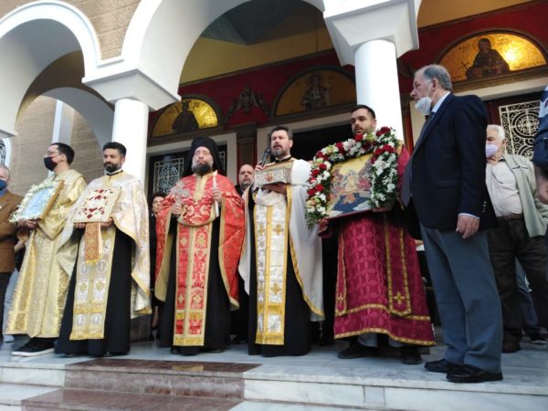 Μέσα στον κατάφορτο από συγκίνηση λαό του 4-ου Διαμερίσματος της Αθήνας – Κολωνός Ακαδημία Πλάτωνος – αλλά και άλλων ευσεβών χριστιανών που προσήλθαν για να τιμήσουν την μνήμη του τροπαιοφόρου Αγίου Γεωργίου, εορτάστηκε σήμερα Δευτέρα 25-4-2022 στον λαμπρηφόρο ναό του Αγίου Γεωργίου Ακαδημίας Πλάτωνος, η σεπτή μνήμη του «ενδόξου λέοντος» και «πολύφωτου αστέρος» της ορθοδοξίας μας Αγίου Γεωργίου. Του ενάρετου Γεωργίου, που θυσίασε την έξοχη στρατιωτική καριέρα του, την υψηλή κοινωνική του καταγωγή, αλλά και αυτήν την ίδια του την ζωή, για να διατρανώσει την απαρασάλευτη πίστη στην Χριστιανοσύνη μας. Και ήταν η γλυκιά αύρα του σημερινού ανοιξιάτικου απογεύματος, γονιμοποιημένη από την «θεία ατμόσφαιρα» της μνήμης του Αγίου, αλλά και την ακένωτη ιστορικότητα της ξεχωριστής σε ομορφιά περιοχής της Ακαδημίας Πλάτωνος, που προσέφεραν στο χριστεπώνυμο πλήθος μοναδικήν ηθική ανάταση.