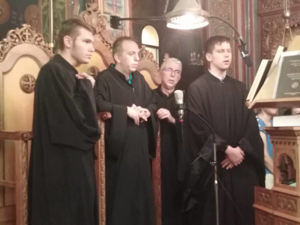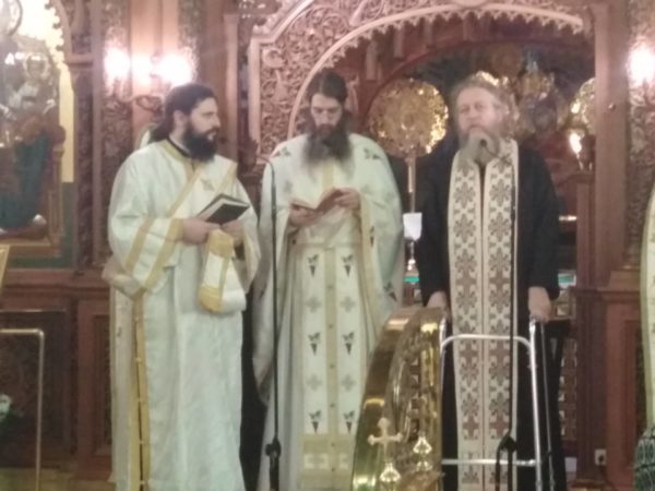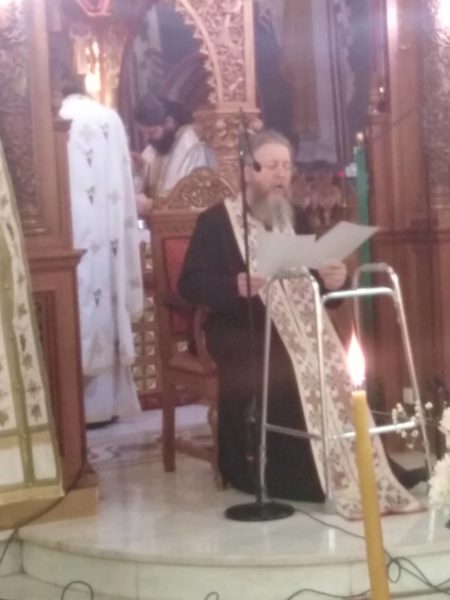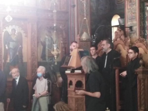 Της ιεράς λειτουργίας για την σεπτή μνήμη του Αγίου των Αθηνών Μιχαήλ Χωνιάτη στον Άγιο Ελευθέριο της Αχαρνών, χοροστάτησε ο σεπτός αρχιερατικός προϊστάμενος του Αγίου Ελευθερίου, πατέρας Θεμιστοκλής Χριστοδούλου, που μας συγκίνησε με την θυσιαστική του παρουσία – με σπασμένο πόδι ! να λειτουργεί με την βοήθεια του «Π», κάτω από τα έμφορτα σε συγκίνηση μάτια όλων των εκκλησιαζομένων – με την αρωγή των υπολοίπων ευλαβών ιερέων του ναού.